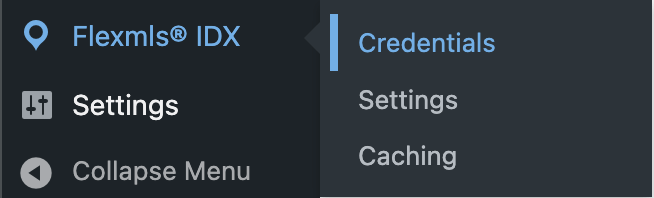 Navigate to FlexmlsIDX > Credentials under the menu in WordPress.